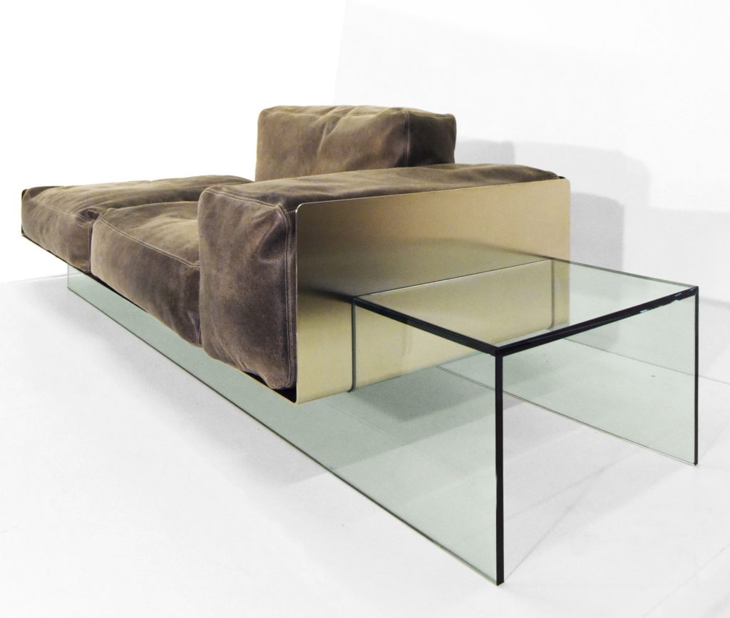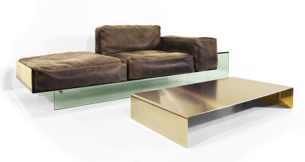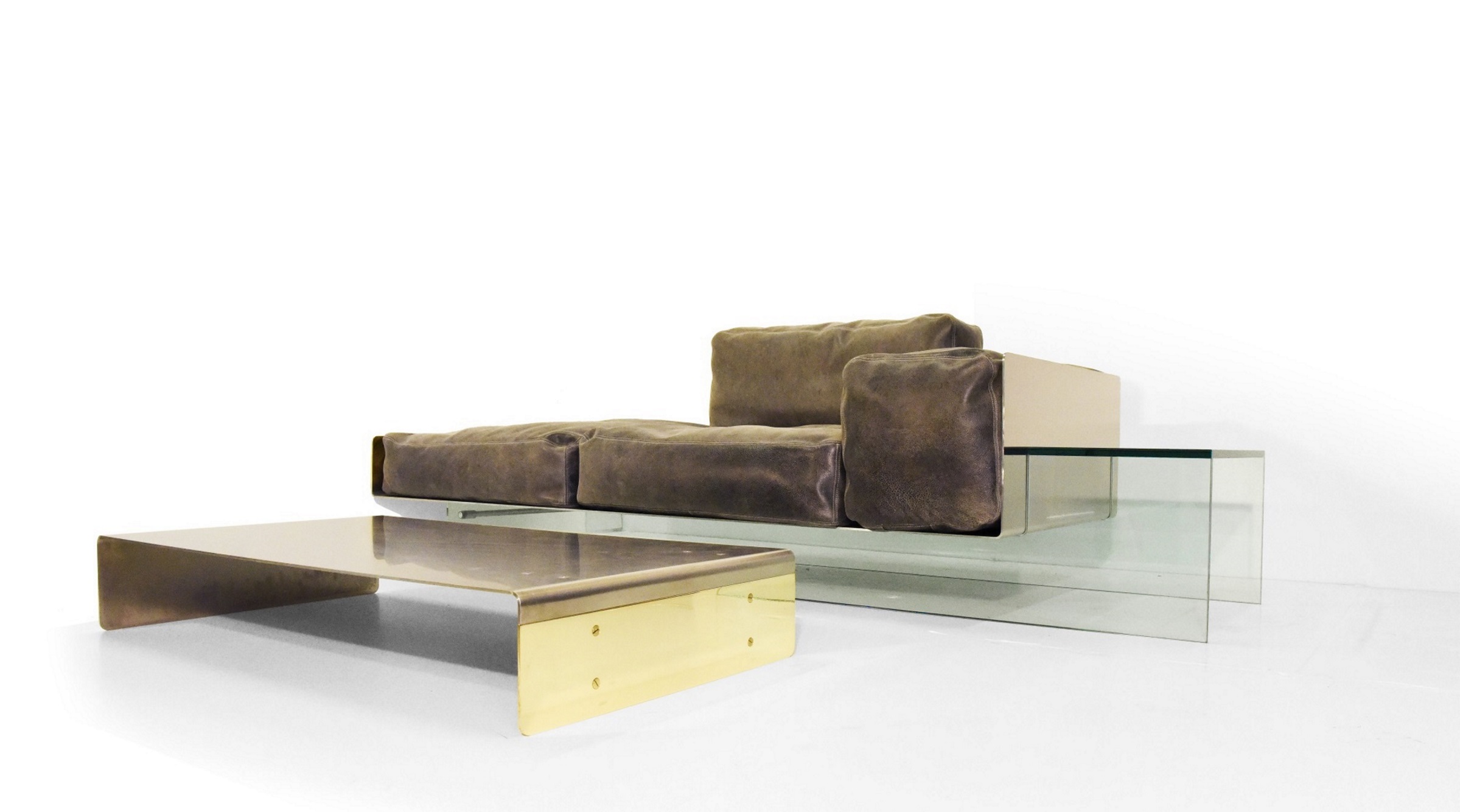 brushed stainless steel/brass/glass 260x90x80 cm
