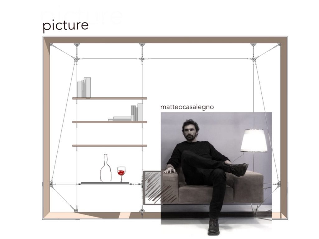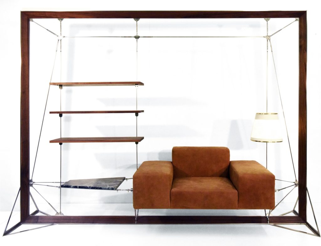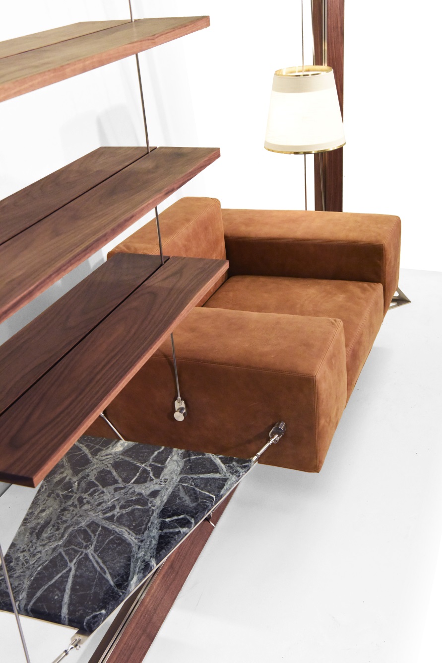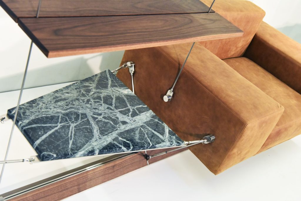 stainless steel, brass, solid walnut, marble, leather 300x210x80