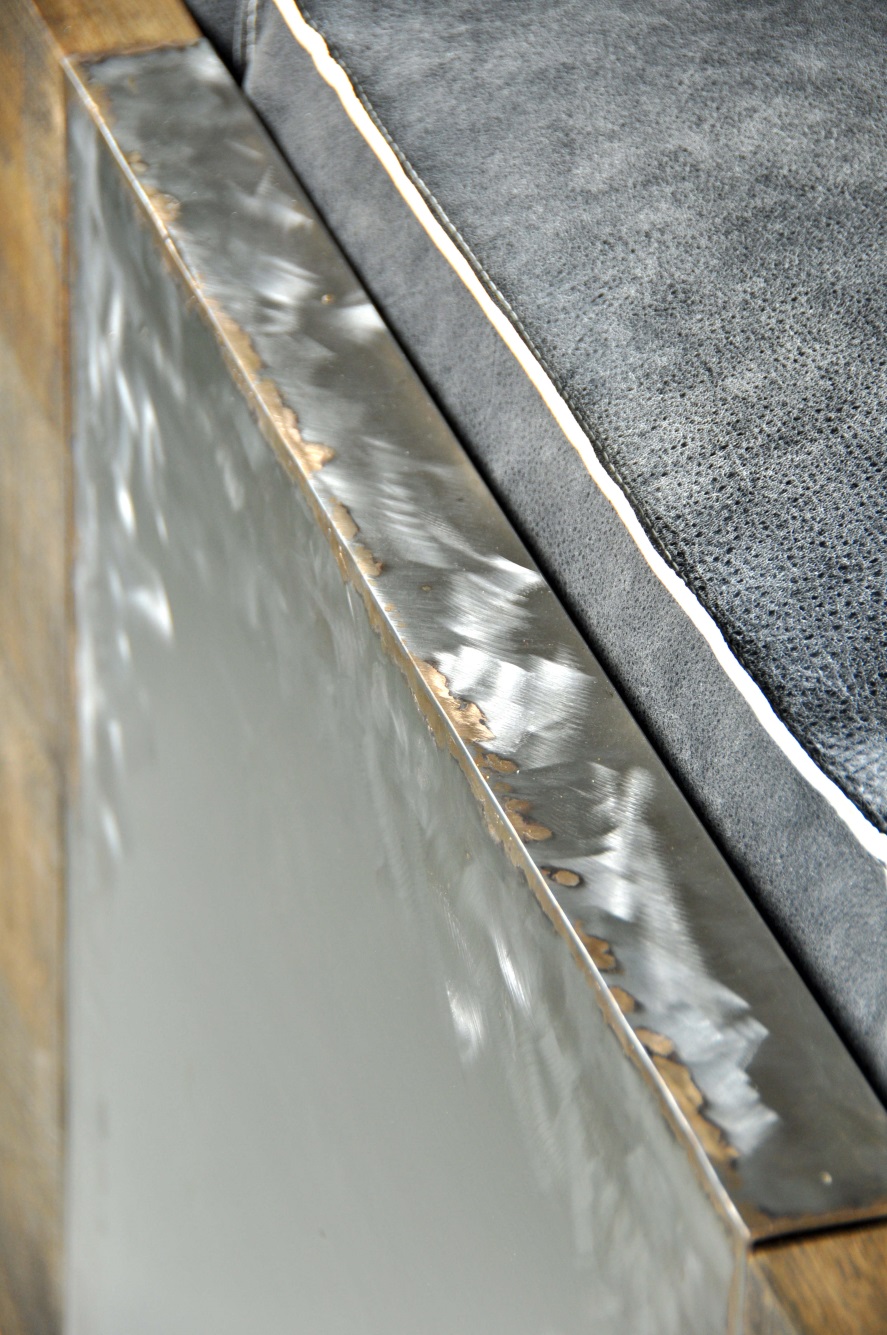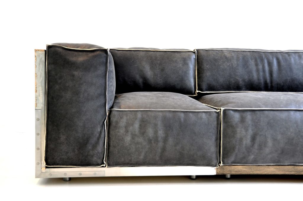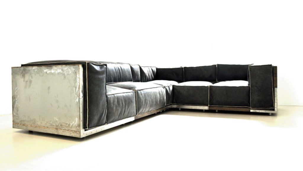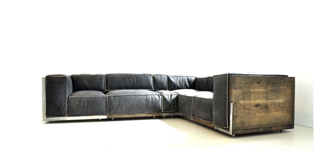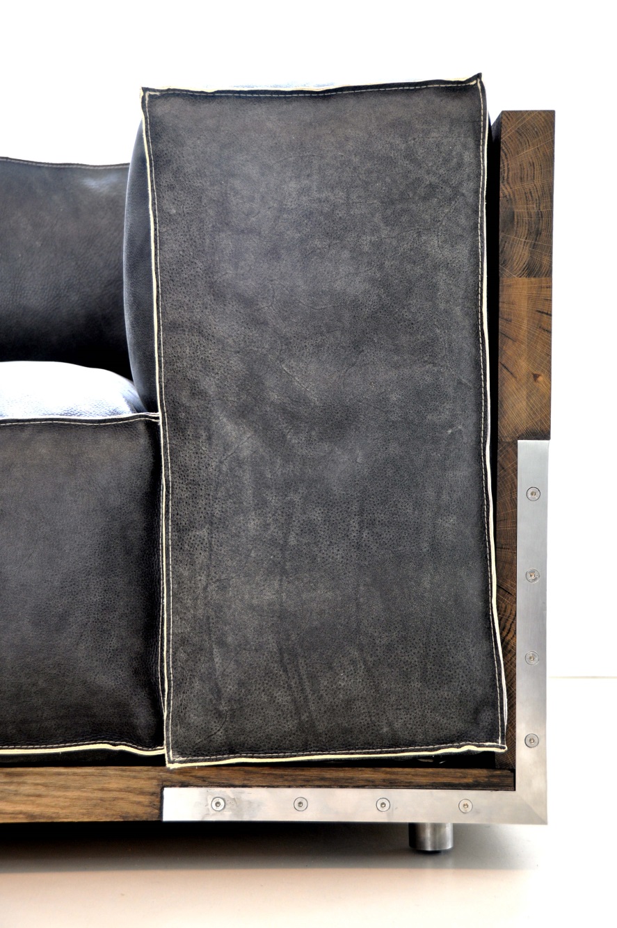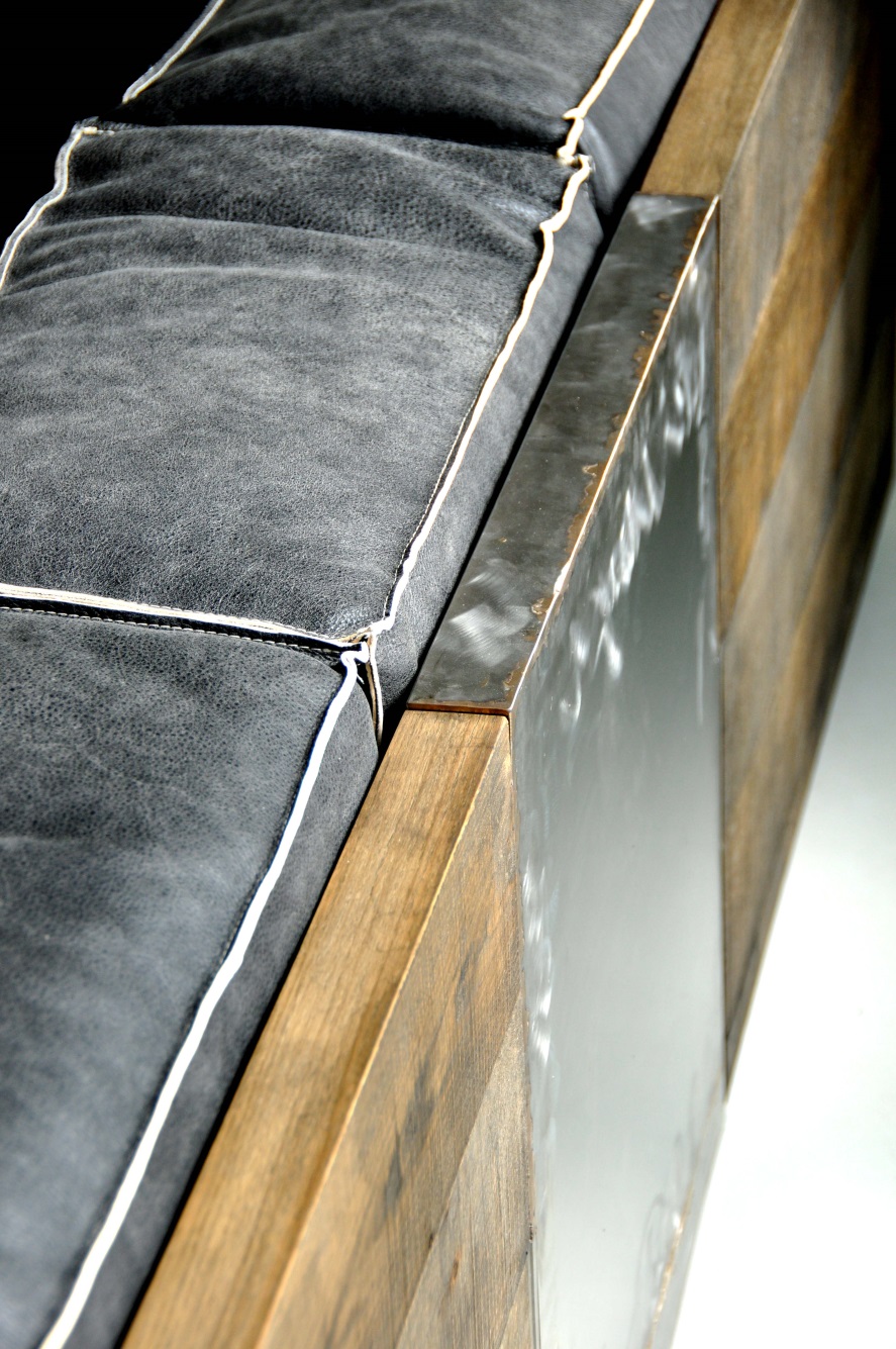 brushed stainless steel / durmast oak/leather modular size 30/60/90 cm, corner 95 cm